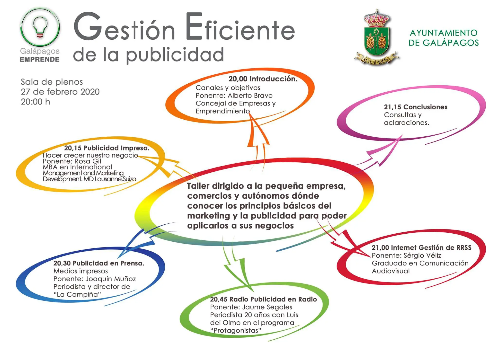 Galápagos Emprende es una iniciativa municipal creada para el apoyo y fomento de las personas con actividad comercial o empresarial en nuestro pueblo. Destinado a ser un punto de referencia y ayuda en todas las necesidades y pensada para crear una RED de servicios que impulse y de solvencia a nuestros emprededores.